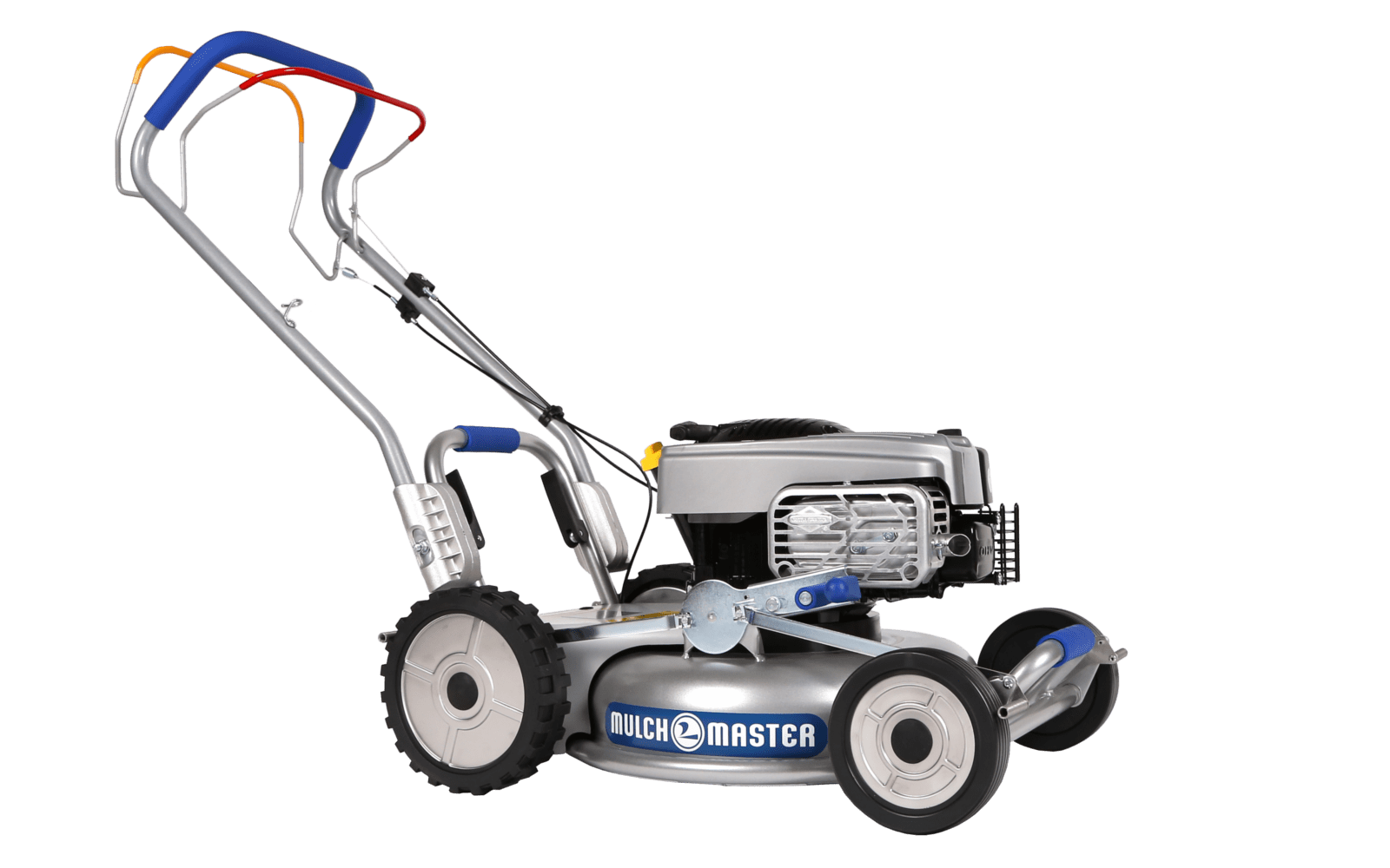 Die Mulchmaster Profiserie zeichnet sich durch starke Motoren, den patentierten Motorwellenschutz, kompakte Bauweise, Stabilität und ein dafür geringes Gewicht aus. Die Mulchmaster Profimäher kommen auf Flächen bis zu 3000 m² zum Einsatz und können, neben dem hervorragenden Mulchergebnis in Grashöhen bis 15 cm, auch Gras bis zu 40 cm Höhe mähen wie ein Auswurfmäher.